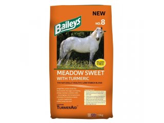 With a blend of fibre sources, including Baileys Light Chaff, Meadow Sweet contains no whole cereal flakes and is molasses-free. It has a light coating of honey, which supplies low levels of natural prebiotic sugars, and a dusting of mint, making it suitable for the fussiest of feeders. It also contains TurmerAid complete turmeric supplement, which supplies ingredients to support healthy joints, well-being and the horse's natural defence mechanisms. When fed at recommended levels, Meadow Sweet will deliver the appropriate daily levels of TurmerAid supplement.