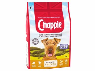 Chappie dry dog food with chicken and wholegrain cereal is complete pet food for adult dogs.
