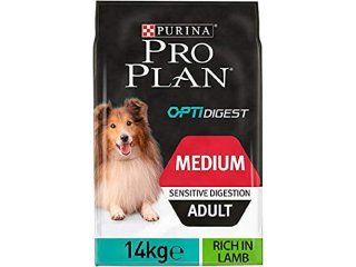 PURINA PRO PLAN DOG Medium Adult Sensitive Digestion Rich in Lamb contains OPTIDIGEST, a balance of easily digestible nutrients at specific levels for medium-sized adult dogs with sensitive digestion.This sensitive digestion recipe contains a combination of nutrients specific to your dog's age, size and needs called OPTIDIGEST. OPTIDIGEST helps improve microflora balance and promotes good quality stool, thanks to the inclusion of natural source of prebiotic scientifically proven to increase bifidobacteria for a better gut microflora balance egg and bentonite, a natural clay. This sensitive digestion dry dog food has been carefully cooked, and contains high quality lamb. The recipe contains all the nutrients your dog needs for his every day health, supporting him through day-to-day life as part of an active and balanced lifestyle.